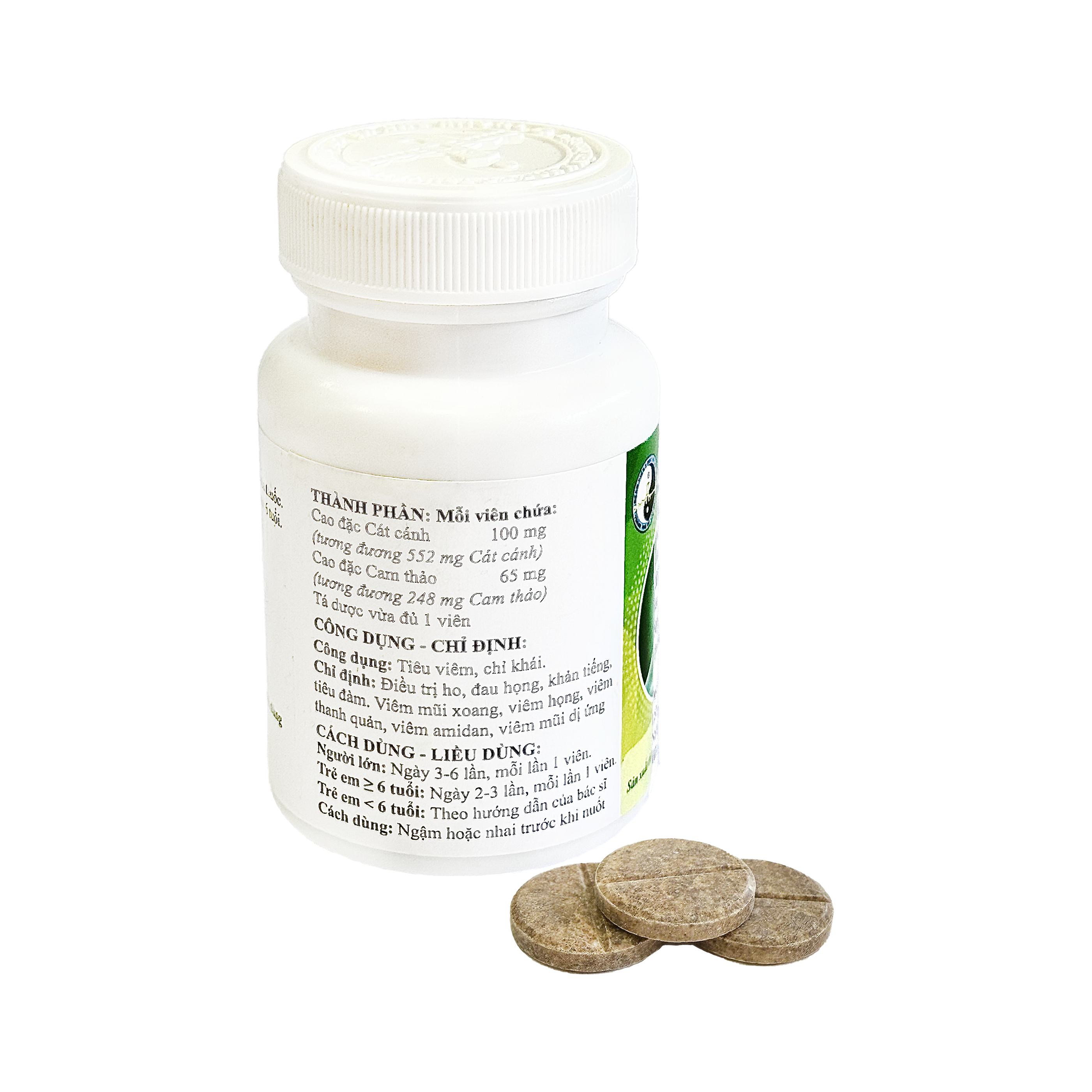 Cao đặc quy về khan 180 mg tương ứng với: Cát cánh 444 mg; Cam thảo 331 mg; Huyền sâm 219 mg