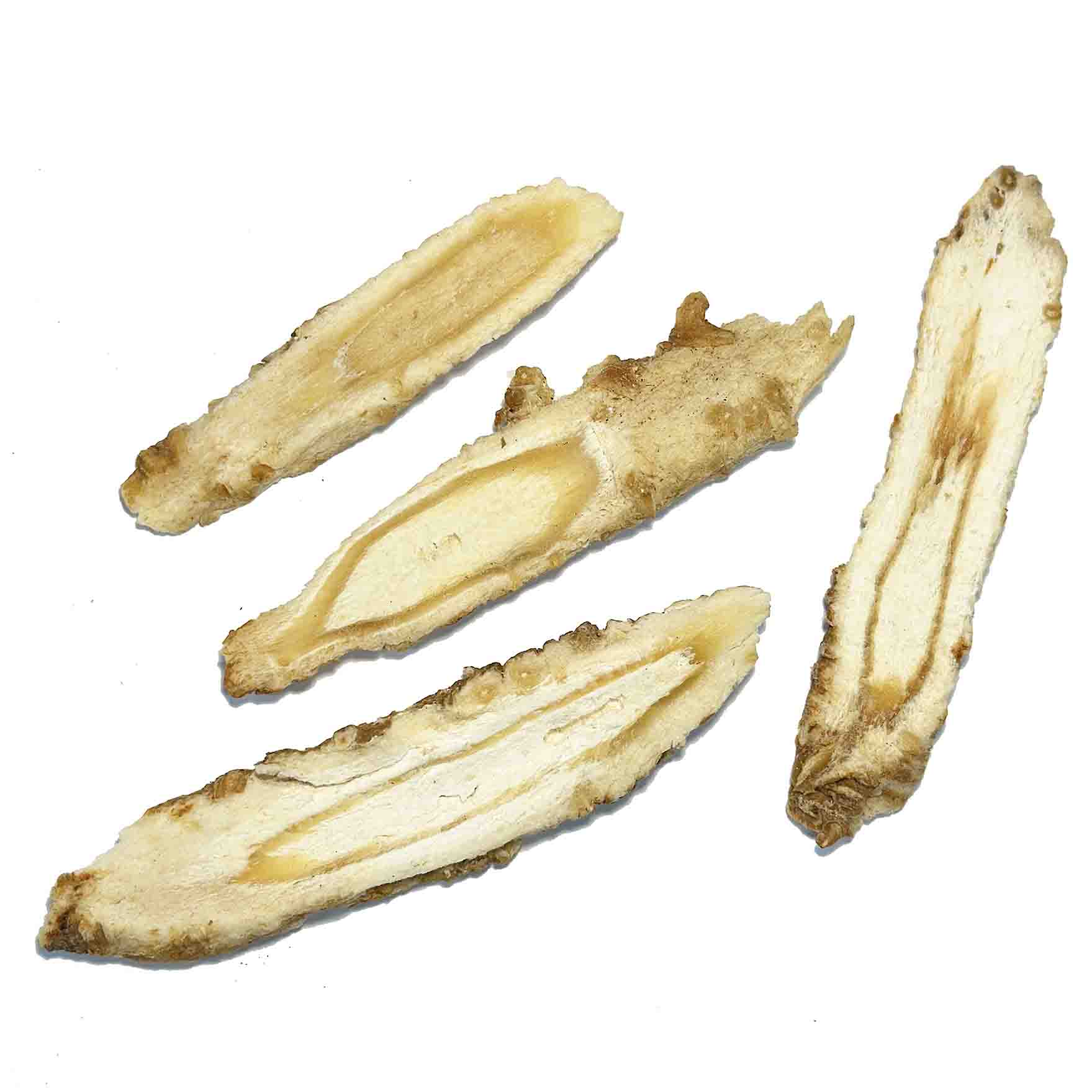 Mô tả cảm quan: Rễ thái lát dày 0,1 – 0,5 cm, đường kính 1 – 5 cm, rộng 0,5 – 2 cm. Vỏ màu vàng nâu, có vân, rãnh nhăn, lõi màu vàng nhạt đến vàng nâu, khô xơ, thể chất cứng. Mùi thơm, vị hơi ngọt.